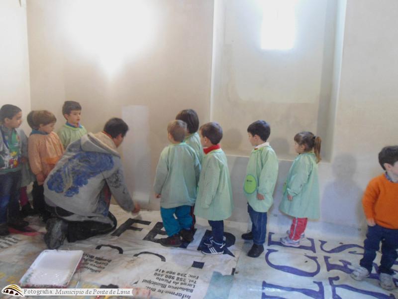 Todas as crianças aprenderam como pintar com tinta de água e verificaram que as paredes da capela ficaram muito mais bonitas depois de aplicada a tinta branca.