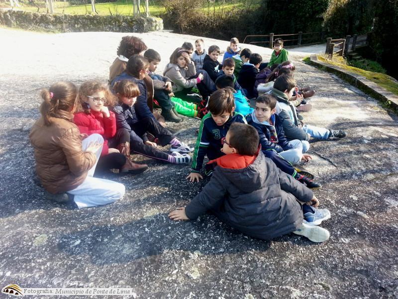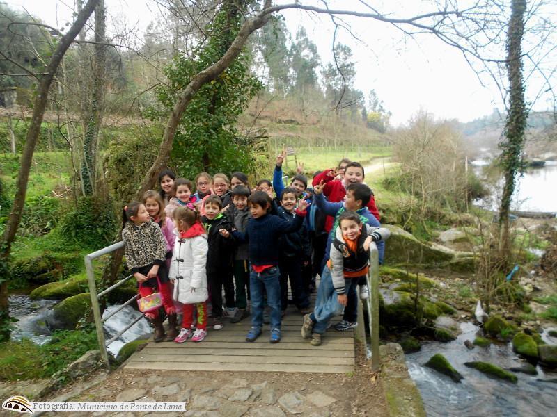 A visita de estudo iniciou-se com a paragem do autocarro perto do campo de futebol e a consequente caminhada pela Ecovia, na margem do rio Lima.