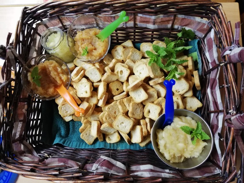 De seguida, essas mesmas variedades foram transformadas em doce e compota, que as crianças provaram em pequenas tostas.